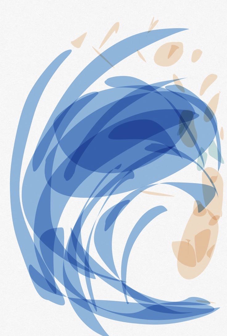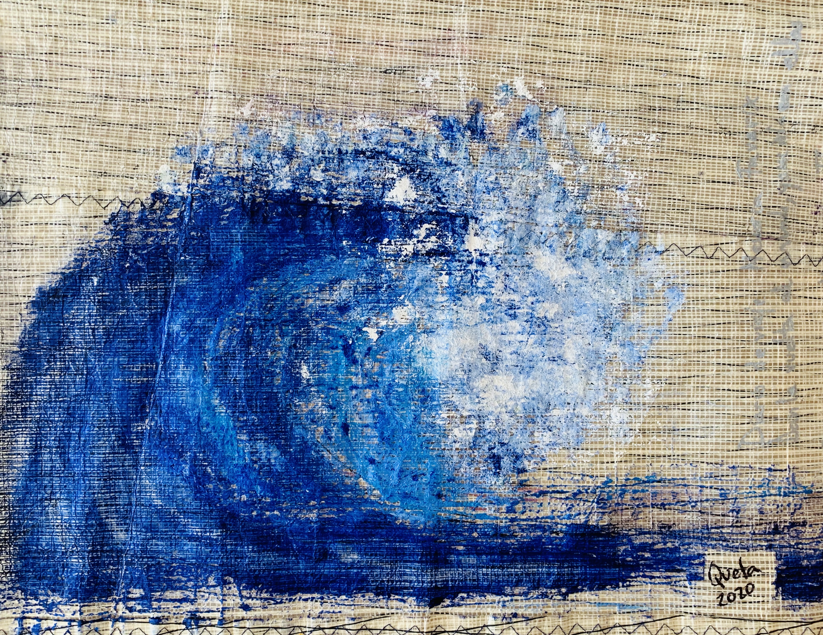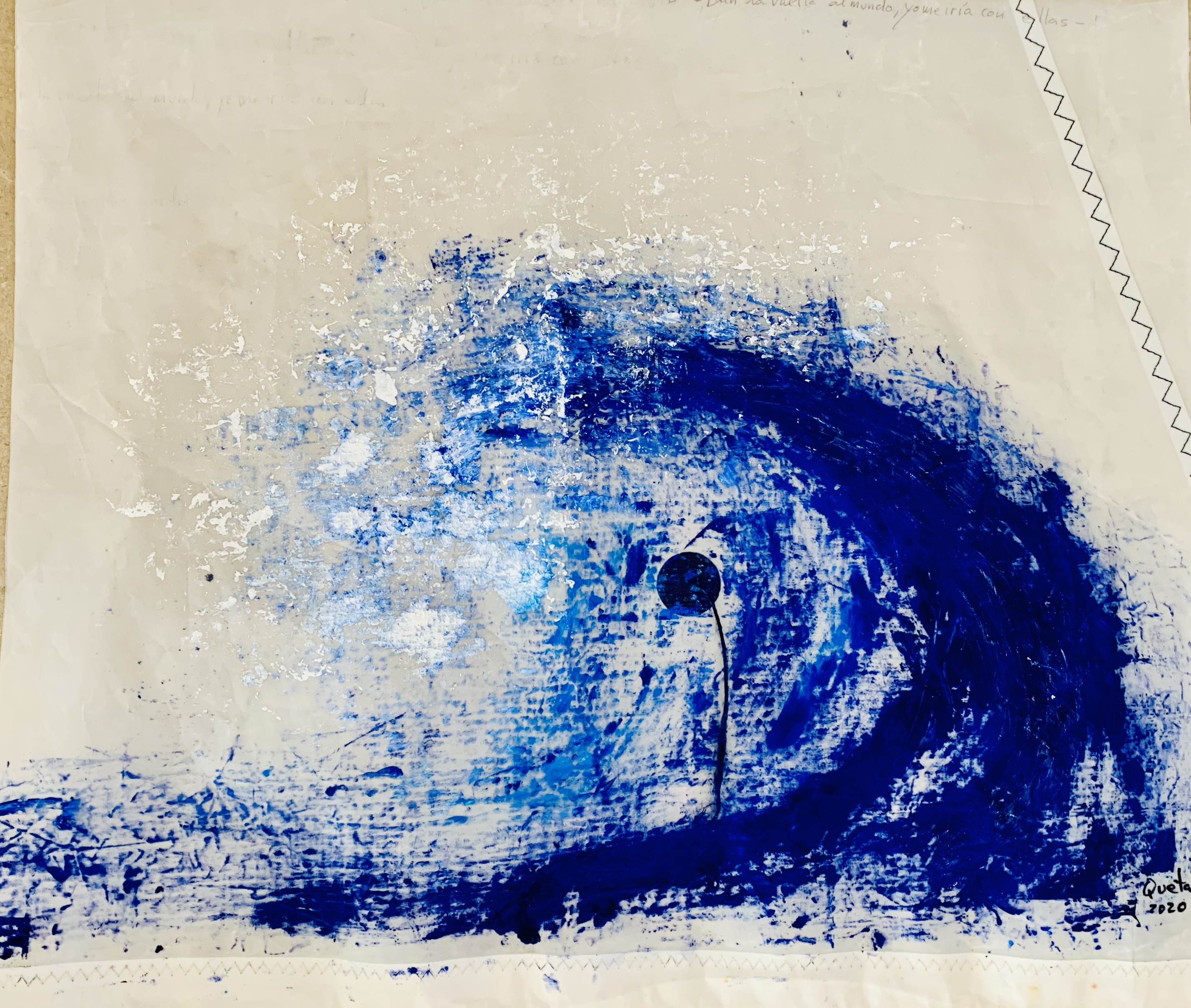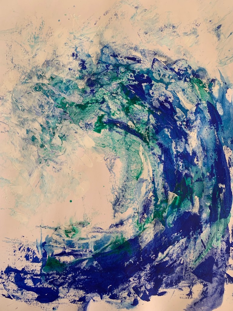 Recordando a Hokusai, pintar una ola fue el primer tema que abordé en el duro confinamiento de marzo y abril del año pasado. No sé bien porqué, pero me ayudaba anímicamente centrarme en algo fuerte de trazo y simple de color.