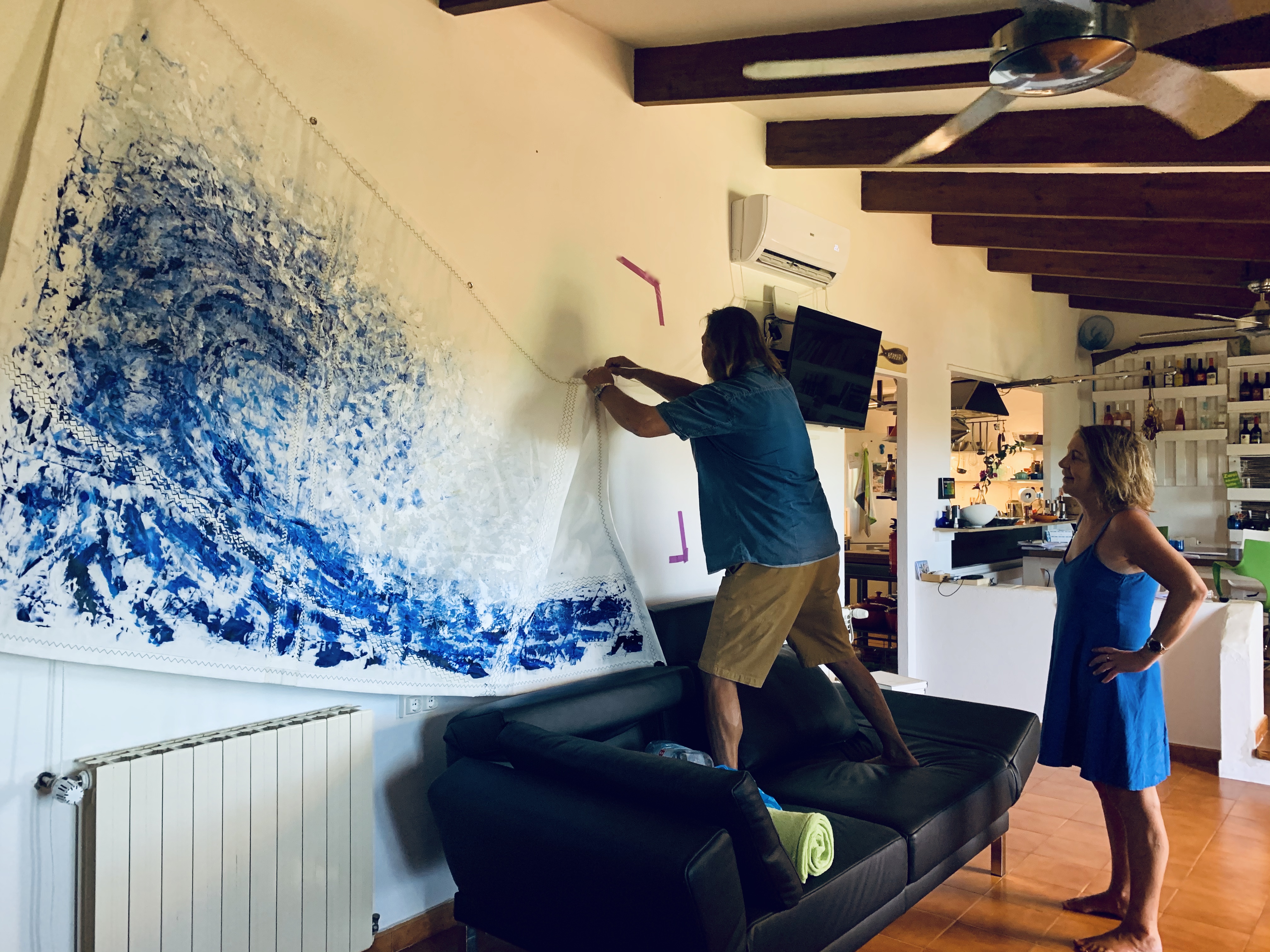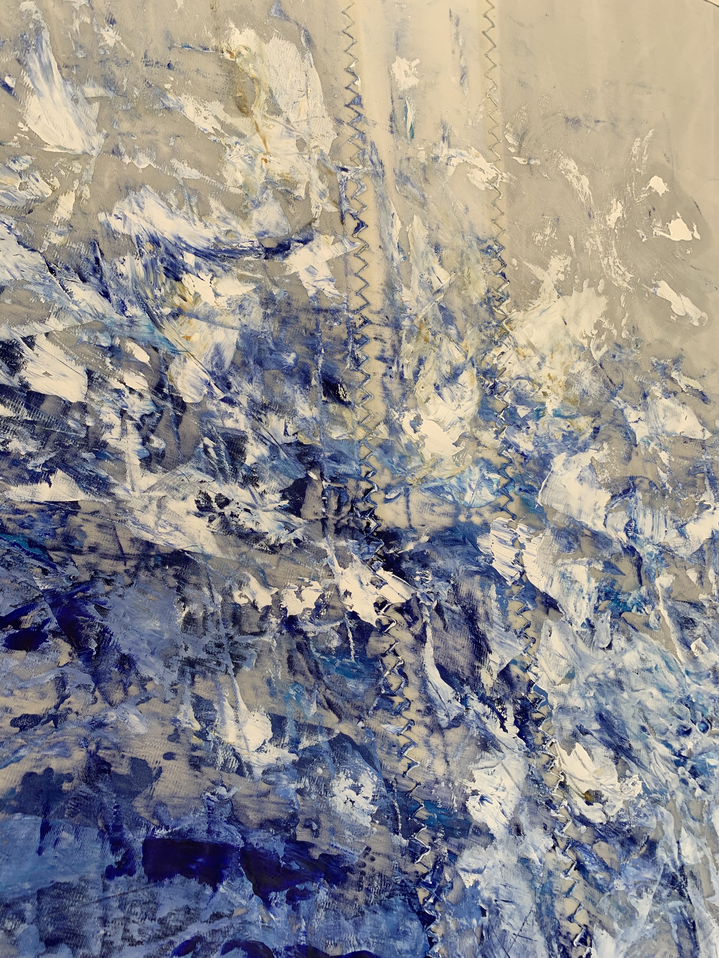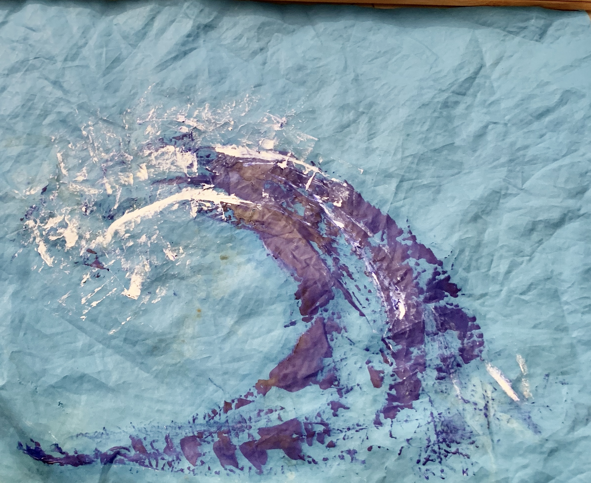Recordando a Hokusai, pintar una ola fue el primer tema que abordé en el duro confinamiento de marzo y abril del año pasado. No sé bien porqué, pero me ayudaba anímicamente centrarme en algo fuerte de trazo y simple de color.