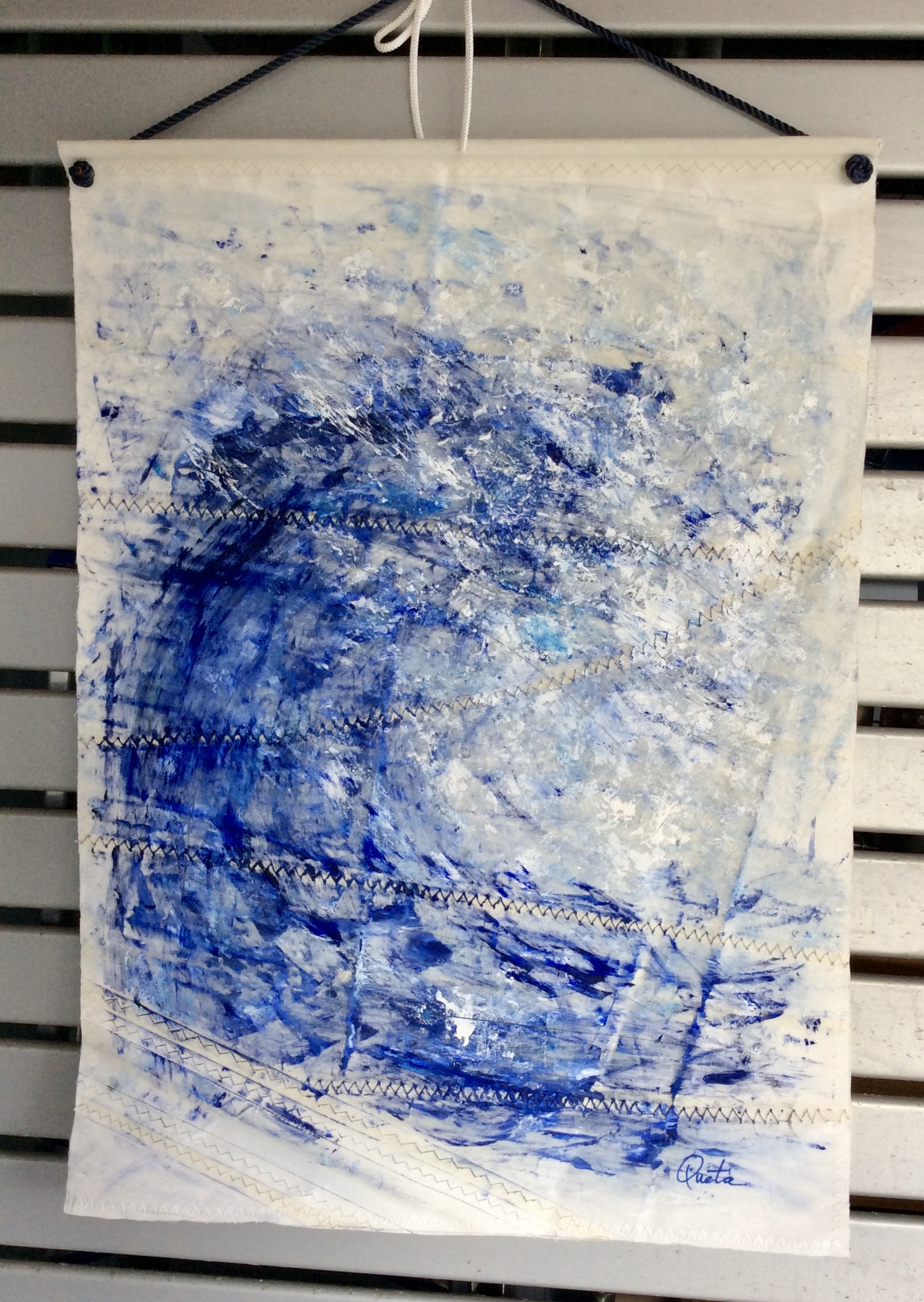Sobre diferentes tejidos de vela, con pincel, con espátula, en digital también; en todos los tamaños hasta llegar a uno muy muy grande que me encargaron y fue todo un reto con el que aprendí, disfruté y perdí muchos miedos.